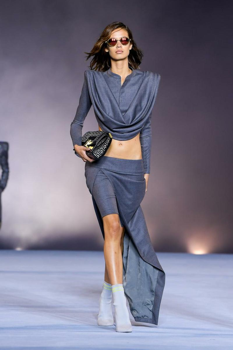 Olivier Rousteing does it again; surprise¡ing us with a different show. A mix between face-to-face and virtual show with screens in front of the catwalk as first row that showed Anna Wintour, Cara Delevinge, etc. Celebrating 75 years of the brand. You can´t imagine how much I liked the collection. A mix of neon colors, grays and lots of shiny garments. Big shoulder pads, tight pants and long shorts, both denim and casual ones, were some of the proposals that we will surely be seeing next year.