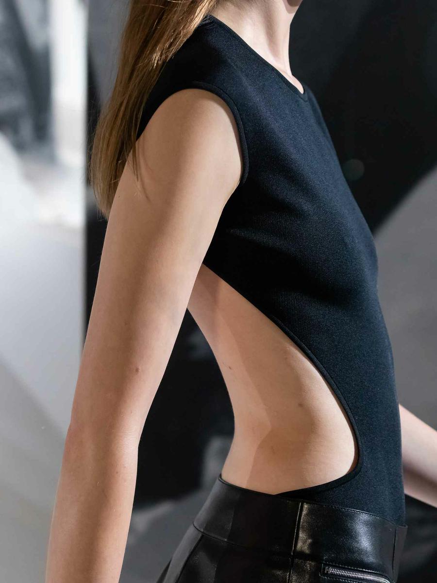 Una colección que a primera vista se muestra sobria y con líneas simples pero al mismo tiempo con un aire sensual por sus escotes pronunciados en la espalda y con tejidos que se dibujan en el cuerpo y se funden con la silueta. Nadège Vanhee-Cybulski propone una colección que enaltece la figura sin restringirla.A collection that at first glance appears sober and with simple lines but at the same time has a sensual feeling due to its pronounced necklines at the back and fabrics that are drawn on the body blending in with the silhouette. Nadège Vanhee-Cybulski proposes a collection that enhances the figure without restricting it.