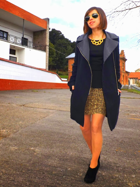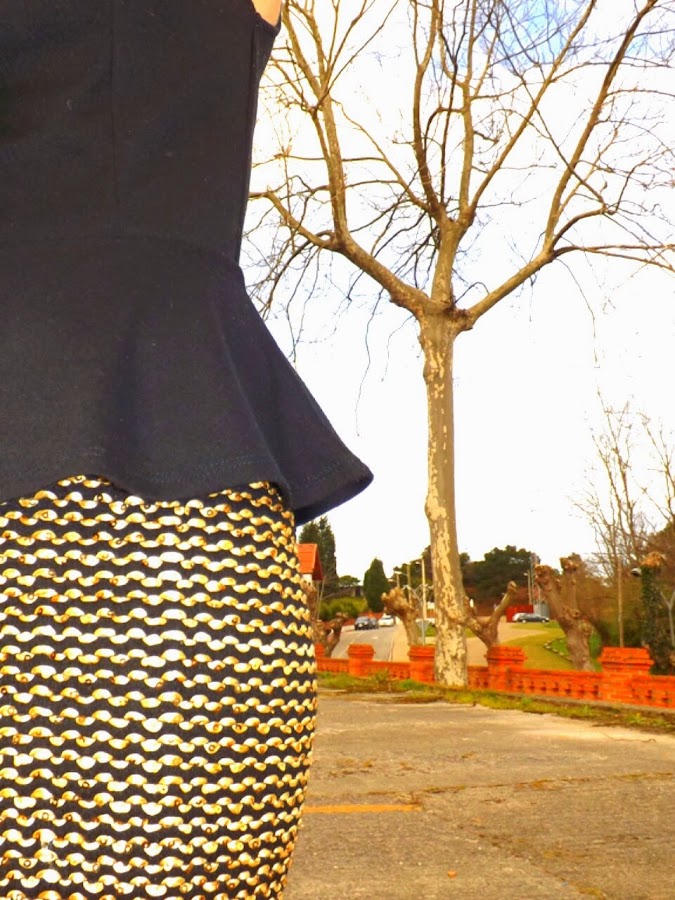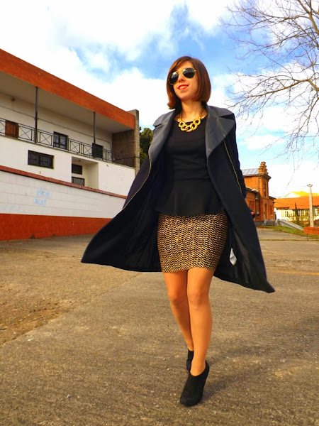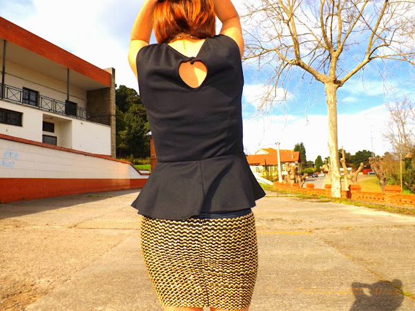 Una combinación de negro y dorado con top peplum para marcar cintura.