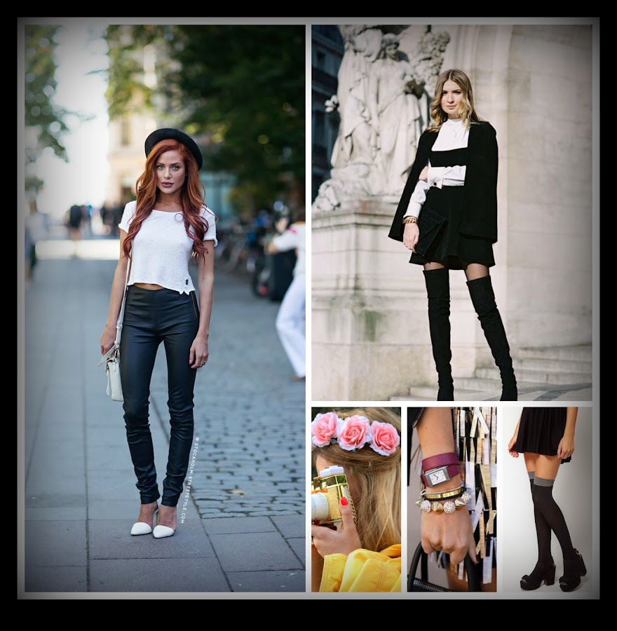 El blanco y negro entre las bloggeras esta de moda.Si le pones por encima un jacket de denim mucho mejor.Las faldas largas estan muy in.En accesorios,las gafas blancas redondas las estan usando mucho.Los sombreros fedora y las boinas tejidas estan muy in.De todos los accesorios sobresalen las pulseras.llevar una cantidad exagerada de pulseras es un toque muy bloggero.La regla de moda indica que no debes de llevar mas de cinco accesorios.Pero,a quien le interesa las reglas si eres bloggera?