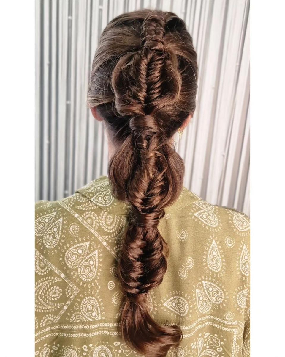 Tira de la parte no trenzada para que aporte el efecto booble y de volumen y modernidad al peinado.