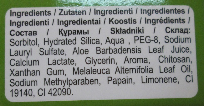 Las anteriores pastas de dientes, la verdad es que al ver sus ingredientes, me decepcionaron un poco... Por eso, ésta pensé que serían totalmente diferente..., ¡pero para nada!. Al igual que las dos anteriores, también contiene entre sus componentes: parabenos, PEG´s, sulfatos, etc.