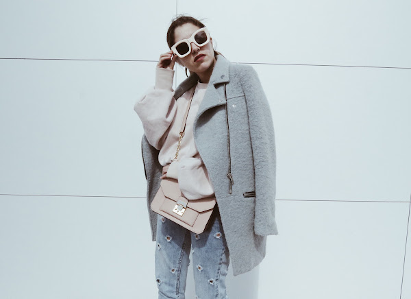 Ademas estreno bolso de BIJOU BRIGITTE, me encanta el tono nude con apliques en dorado, sienta genial.