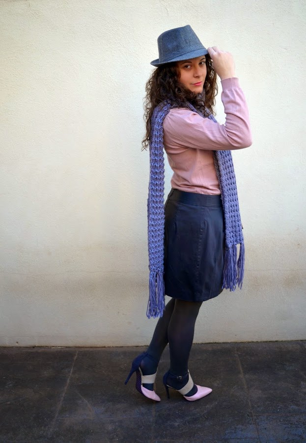 Falda: Sfera (Old) / Jersey y bufanda: Primark / Clutch y zapatos: Blanco (sales) / Sombrero: Tienda local Castellón