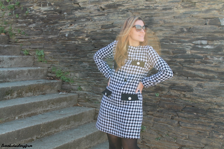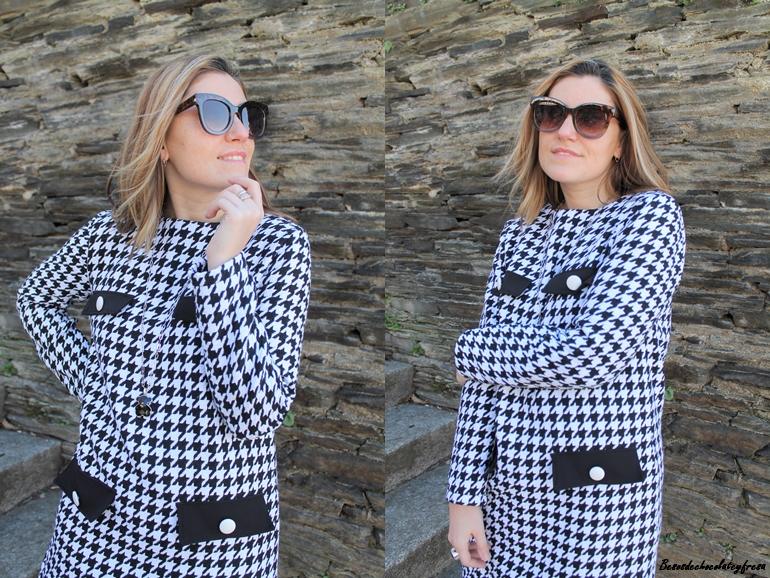 En el outfit de hoy os enseño una propuesta que bien podemos llevar para un día casual o para un evento algo más formal, simplemente hay que adaptar los complementos y resto de prendas. Se trata de un vestido de este estampado de arriba a abajo con 4 bolsillos simulados, dos en la zona del pecho y otros dos en la falda en la cadera. Corte recto que sienta super bien a todo tipo de siluetas.