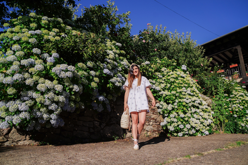El restaurante está situado en Mogarraz, pero después estuvimos dando un paseo por La Alberca y eso me hizo feliz porque había muchísimas hortensias. ¡No pude evitar hacerme fotos con ellas! Ya me conocéis...