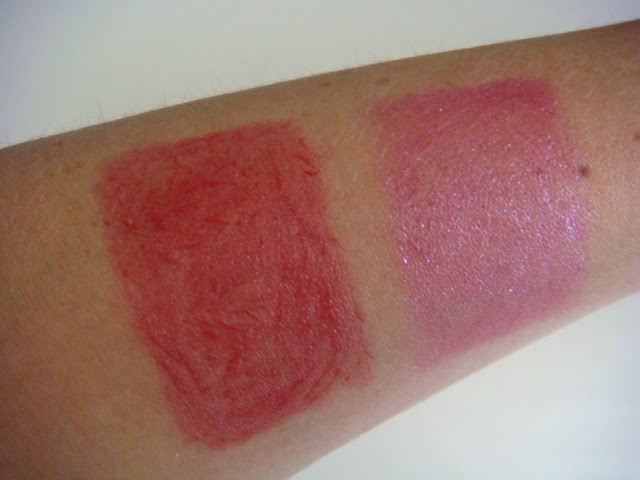 De la gama glossy y en formato Jumbo, se vinieron para casa estos dos tonos tan diferentes. El Movie Star es divino, un rojizo muy favorecedor, y el Flirty and Girly, un rosa de subtono frío que es muy bonito pero está plagado de purpurina y eso hace que dejes brillando a todo el que beses...costaron 2.99$ cada uno. Os dejo fotos con luz artificial y luz natural.