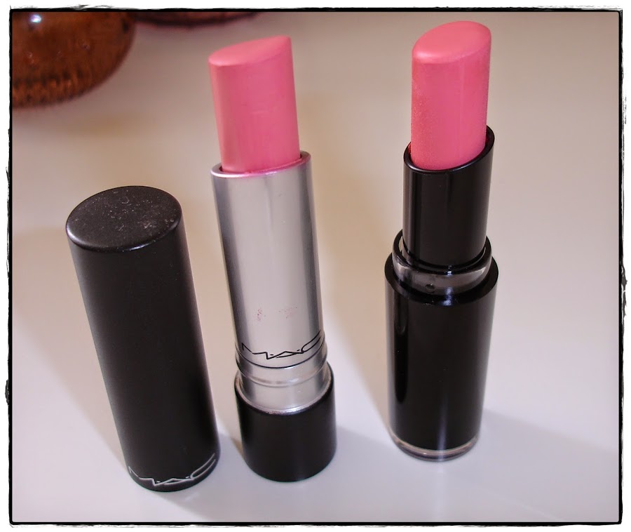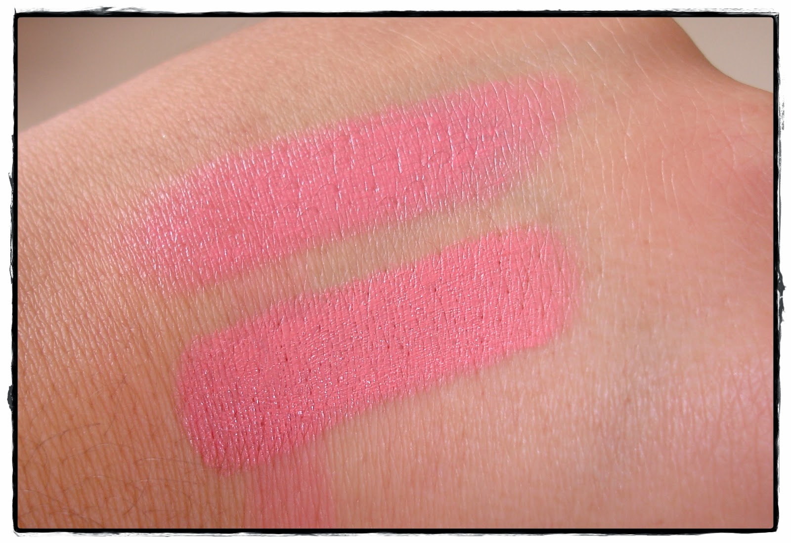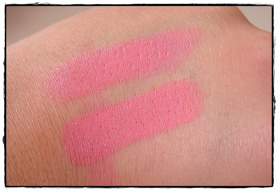 - Por último os hablo del tercer tono, el Think Pink, dicen que es el tono más vendido de la marca, y como yo soy muy de rosas me dije; éste se viene a casa; sin embargo he de decir que no me ha gustado nada, es un rosa chicle apagado y mate, un tono que ni favorece ni queda natural, al menos en mi labio. Pero es más, cuando lo usé me recordó muchísimo a un labial prolongwear de Mac que tengo abandonado al fondo del cajón porque no me gusta, y al compararlos: Bingo! lo que yo me sospechaba, eran prácticamente exactos: