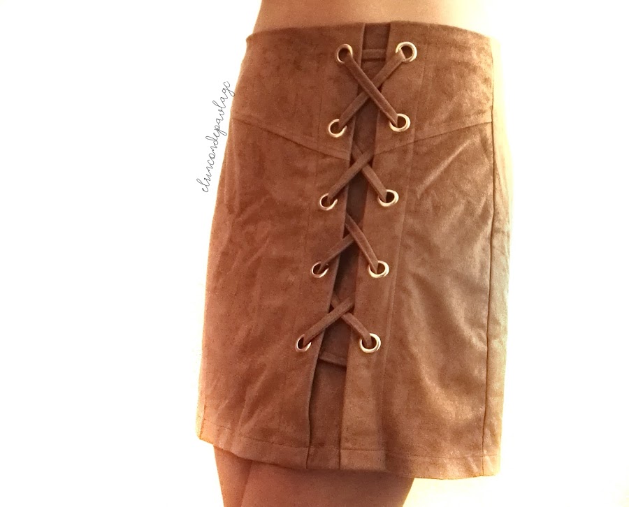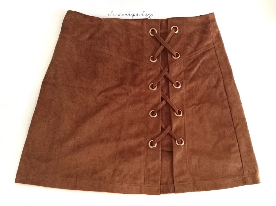 Luego, esta falda de antelina, me gusta mucho y es de buena calidad, con el detalle del cruzado a un lateral. Con unas medias y botines tiene que quedar super bonito el look!