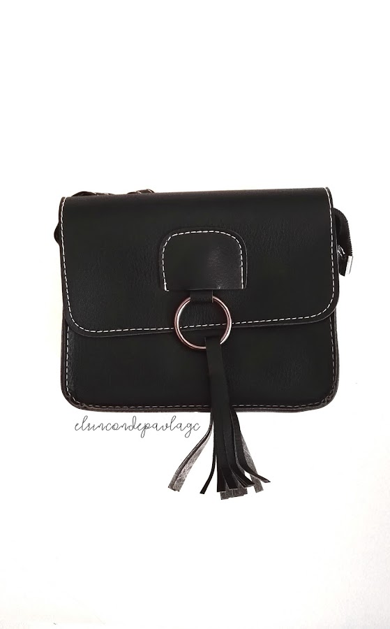 Pedí este bolso que estuvo muy de moda por redes sociales, ya que el detalle del aro con los flecos lo hace más bonito. Es sencillo, y pequeñito, está bien para llevar pocas cosas, pero para mi opinión no me gusto nada, ya que lo veo muy pequeño, y me pega más para niñas de entre 10 y 14 años. El asa es muy pequeñito.