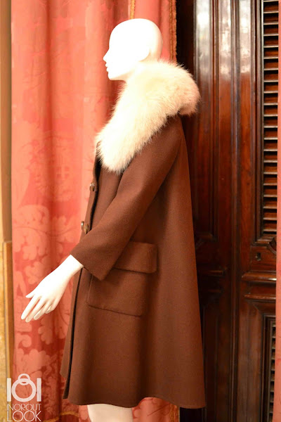 Abrigo marrón de grandes botones y bolsillos con pelo en el cuello.