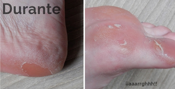 En ese tiempo no es recomendable que usemos sandalias o calzado muy abierto, ya que la piel muerta se irá cayendo gradualmente y puede dar un aspecto bastante desagradable (además de ir dejando pielecillas sueltas por ahí). Más abajo veréis la foto del "durante" y entenderéis por qué os digo esto.