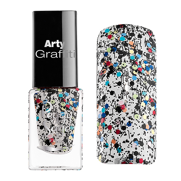 Street Art: Una forma sorprendente de llevar el estilo callejero y los grafittis a tus uñas. Una laca compuesta por copos de diferentes tamaños y formas, así como de una mezcla de colores que te permitirá mil posibilidades en tu manicura.