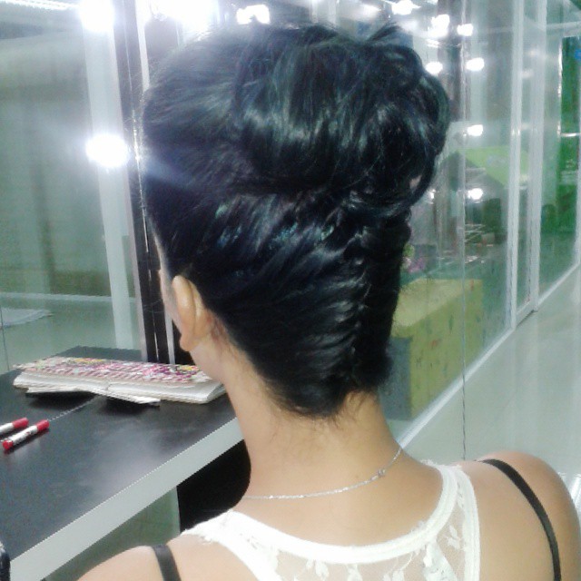3.- Los dos extremos del cabello que tenemos suelto lo vamos a unir con la parte de atrás, y con esto ir creando una coleta alta el cual vamos a ir sellando con fijador o laca para dar mas firmeza.