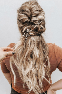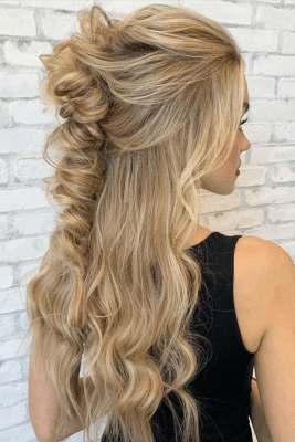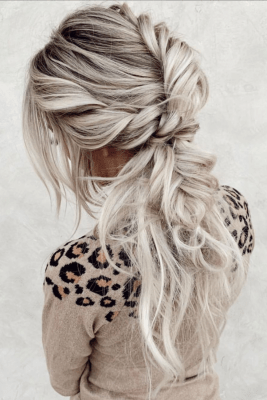 Sin esfuerzo y ultra chic, la trenza lateral es uno de los peinados más populares para cabello largo.Inspírate en la hermosa Blake Lively, conocida por su hermoso cabello y peinados aún más hermosos. Para lograr este aspecto romántico de trenza de barrido lateral, simplemente separe todo el cabello hacia un lado y comience a trenzarlo. Puede optar por la trenza clásica o condimentar las cosas al optar por una cola de pez o una trenza francesa. No olvides peinarte el cabello al final, para un look sexy y desordenado.