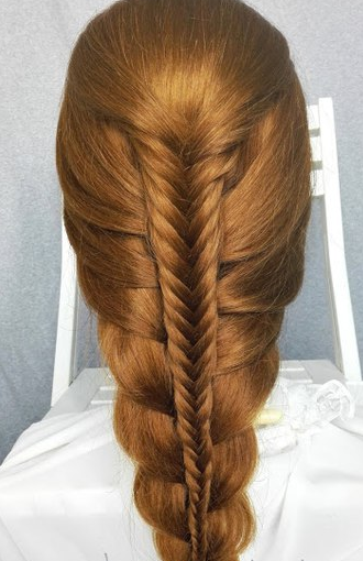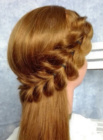 Paso nº 6 .- Mete la colita del trenzado debajo del cabello suelto, asegúralo con unos pasadores.( Haz que este no se vea en el peinado)