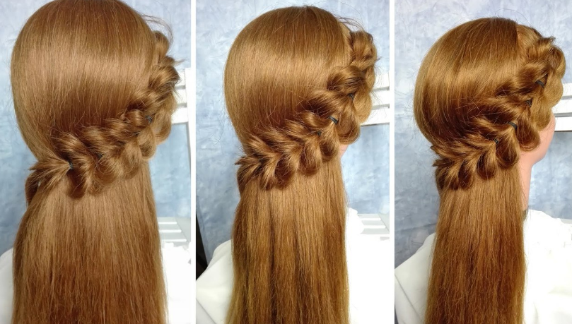 Paso nº 3.-Luego toma otro mechón de cabello del lado derecho y arma otra trenza cascada.