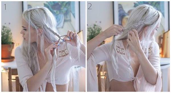 Comienza realizando una trenza en cascada desde la frente en dirección hacia el lado izquierdo.