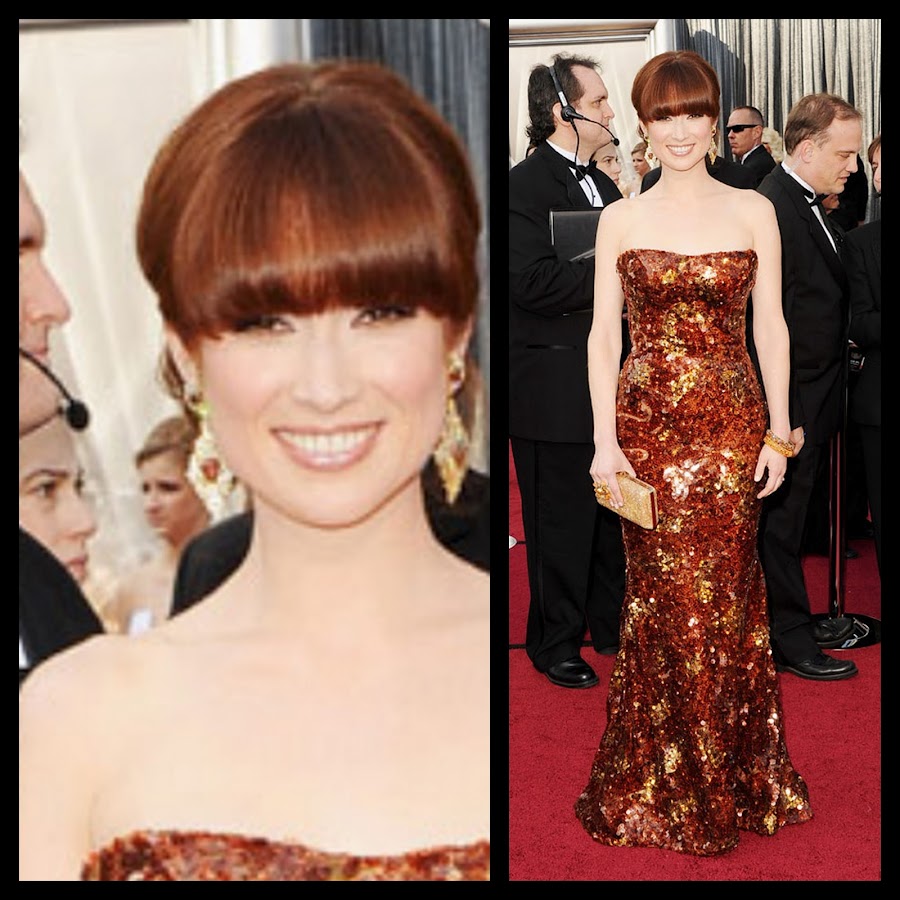 Elle Kemper con un color cobrizo oscuro y Flequillo espoectacular de lo mejor de la noche , viste un Armani Prive.