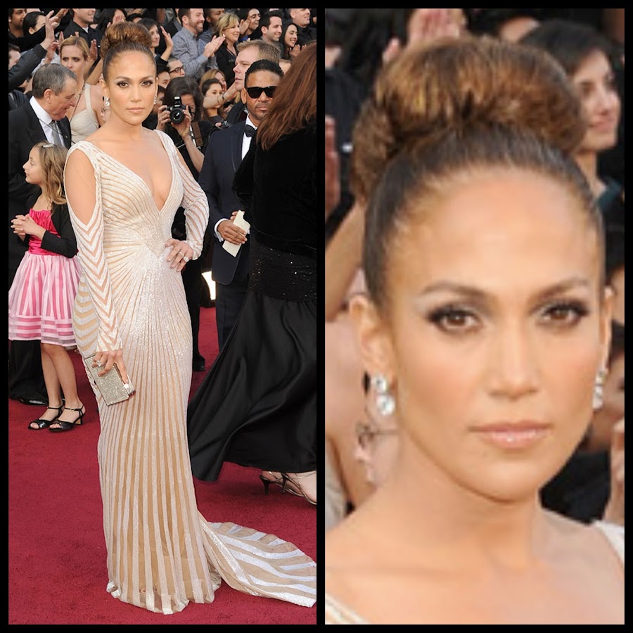 Jennifer Lopez luce un recogido ya clasico en la parte superior que deja toda la belleza al aire libre luciendo un Zuhair Murad