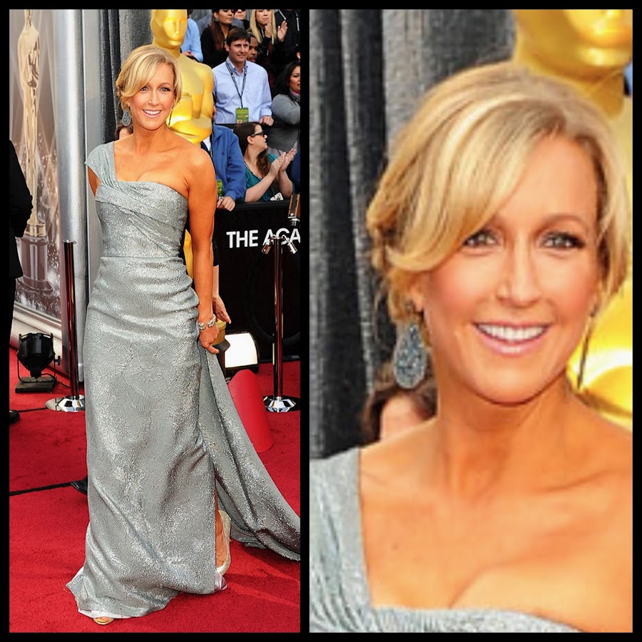 Lara Spencer un recogido suelto y muy natural, nada recargado, y su traje plateado con cola superpuesta.