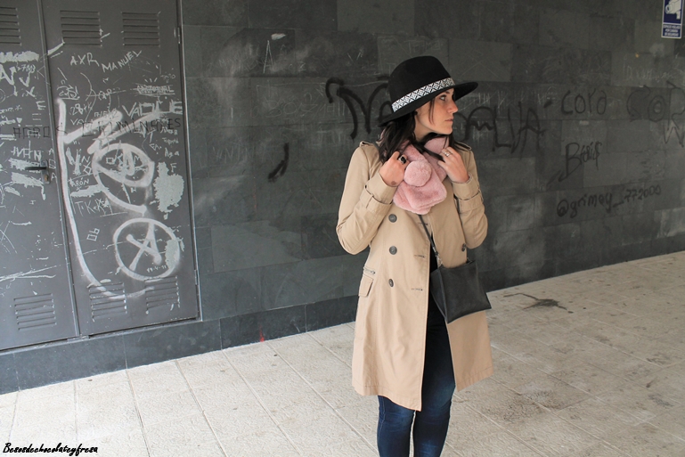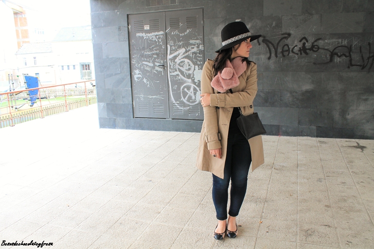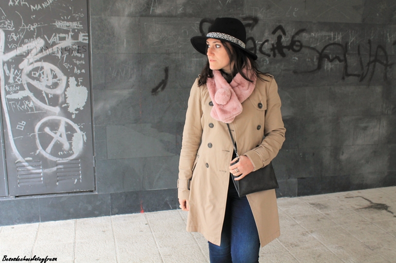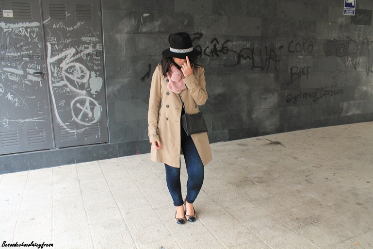 This time I decided to wear it with a basic look and neutral colors such as trench, black sweater, jeans, Chanel dancers, shoulder bag and black hat. What do you think?