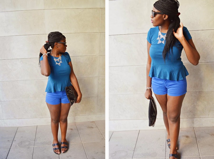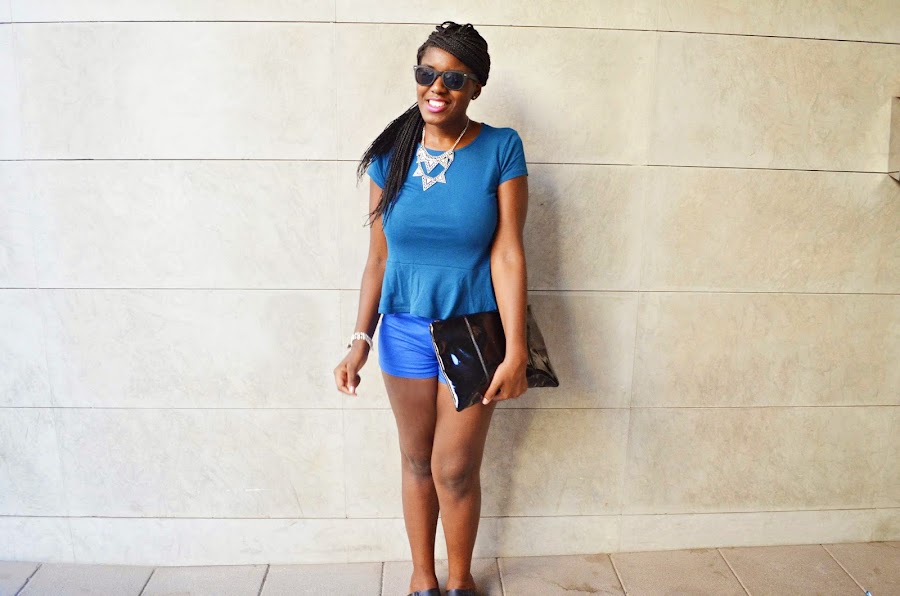 Agosto vino pegando fuerte en Murcia, y cuando no estoy de escapada en la playa me toca buscar outfits cómodos, me puse mi camiseta peplum y shorts azules y a dar una vuelta.¿Qué os parece?