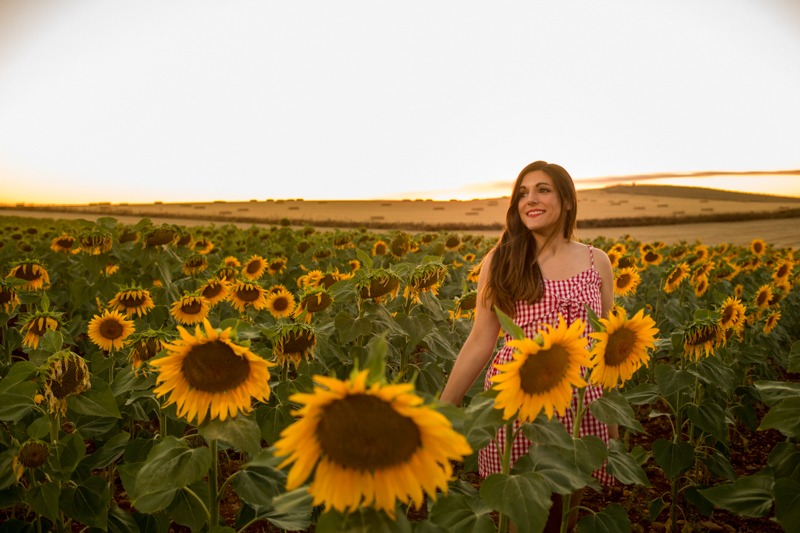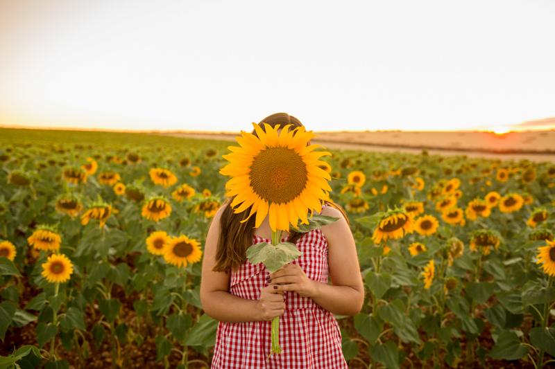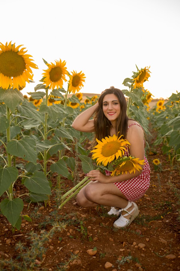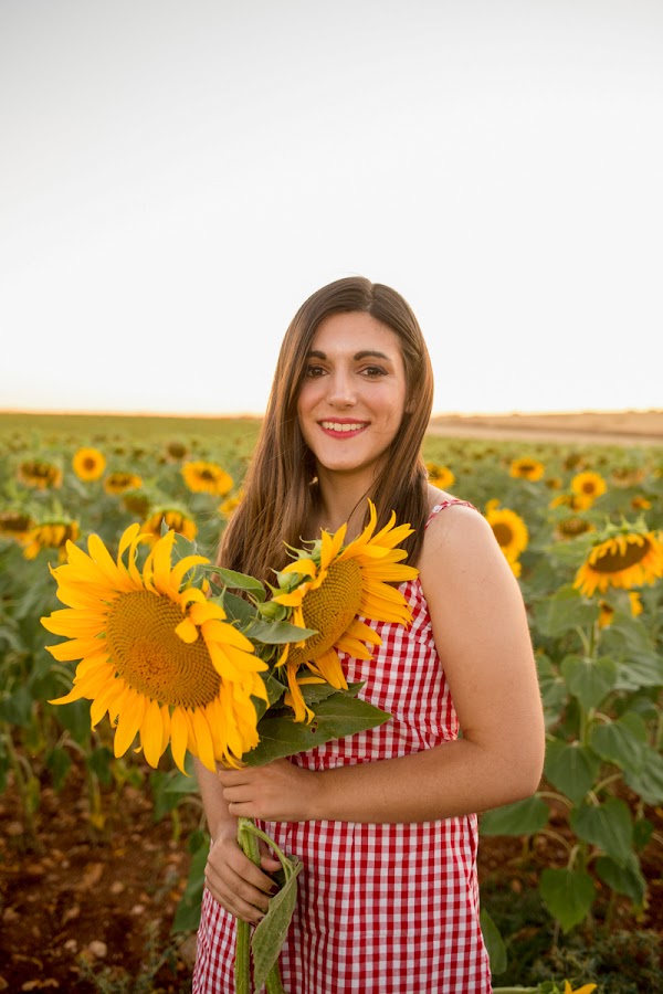 En verano no puedo resistirme a visitar un campo de girasoles. Por suerte, Castilla está llena de ellos -y de mazorcas-. Así que la semana pasada decidimos dar un paseo fotográfico para que Manu y Alex pudieran desplegar todo su arte. Para ello, estrené un vestido que tenía muchísimas ganas de ponerme. En verdad lo reservaba para un picnic (¡es totalmente picnic!), pero no se ha dado la ocasión, así que...