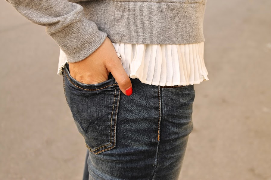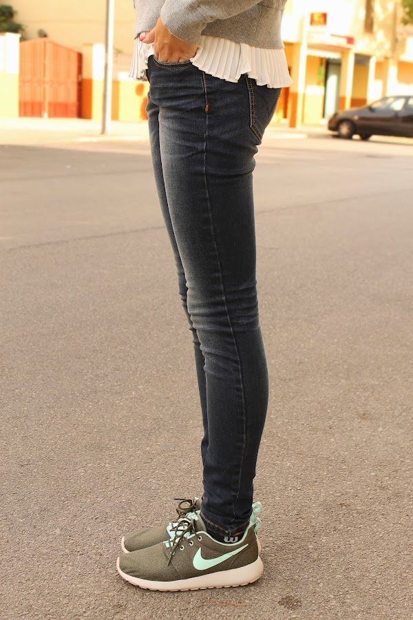 Today I show you an outfit Sporty Chic, I wear a jersey with a forma detail with my sneakers. The clothes I wear are from Blumonde (Forn del Racó 2 (behind the Plaza Mayor) , my favourite shop. Blumonde has got amazing jeans, I love it!