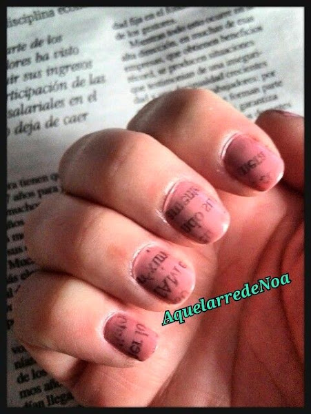 Remojamos nuestro periódico por unos 5-10 minutos en el alcohol, lo ponemos sobre la uña y presionamos ligeramente, se transfiere en muy poco tiempo.