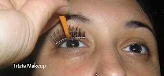 Antes de aplicar nuestras pestañas, debemos medir nuestro ojo con la pestaña postiza y cortar el excedente.
