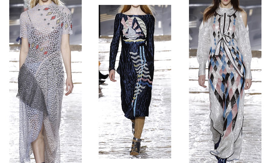 El concepto de lineas sobre el torso se me ha hecho de las mas interesantes, explora la parte barroca y coloquial exponiéndola en prendas actuales, y sobre todo el tema de los vestidos con caída irregular puede llegar a ser arriesgada, pero Peter aposto por los 70s y le quedo perfecto.