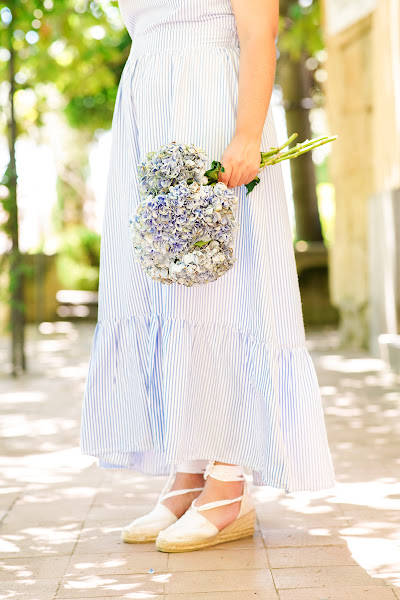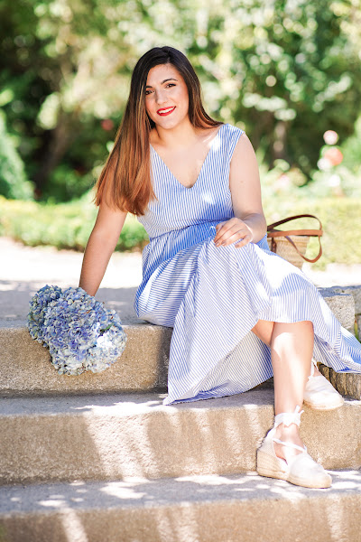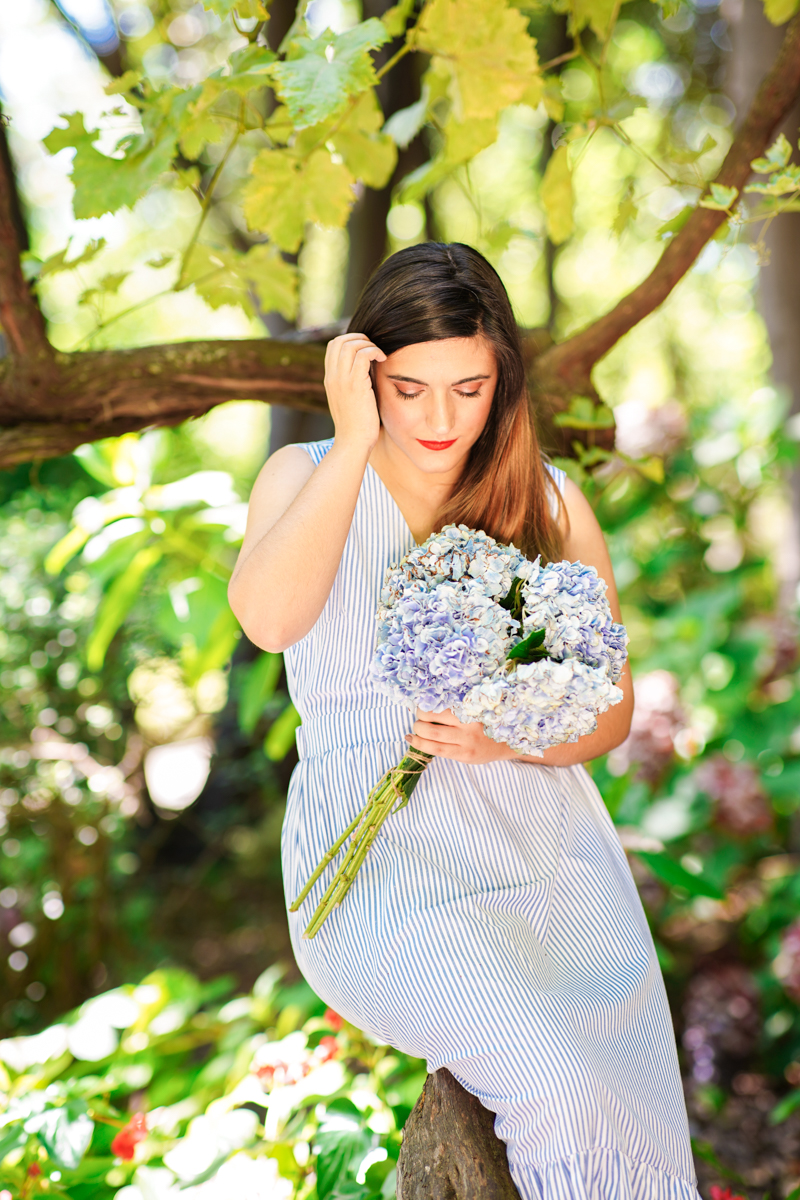 Hicimos estas fotos en mi lugar favorito de toda Salamanca: el Huerto de Calixto y Melibea. Es un pequeño jardín botánico con vistas al río y en pleno centro histórico. Este verano tengo la suerte de trabajar ahí con actividades al aire libre (¡os cuento todo en Instagram!) y vi que tenían unas hortensias espectaculares, así que no paré hasta arrastrar a Mr. Preppy. ¿Y qué pasó? Pues que cuando quisimos -pudimos- hacer las fotos las hortensias ya estaban descoloridas [:(].