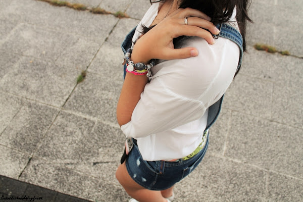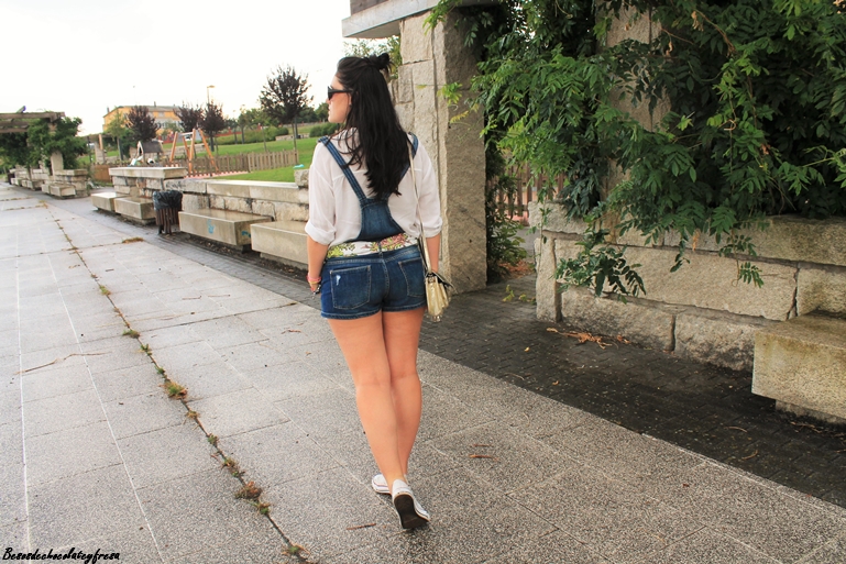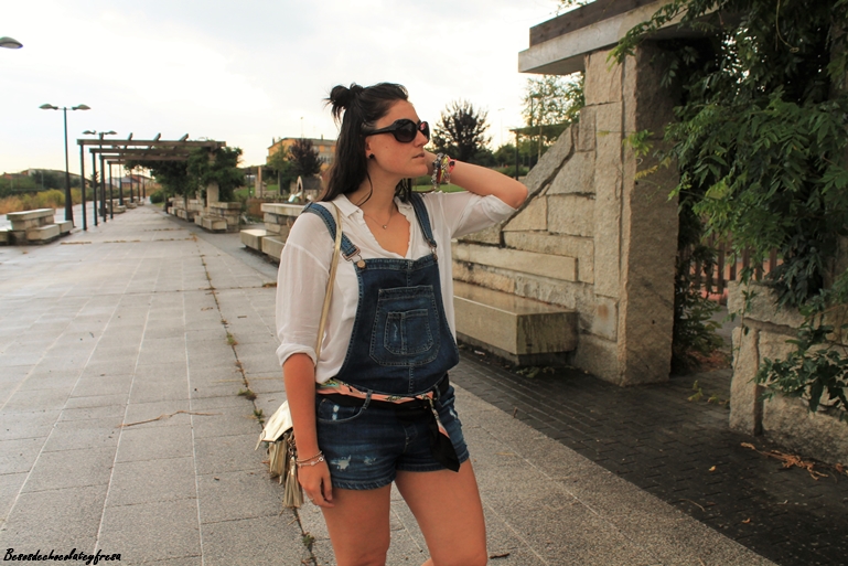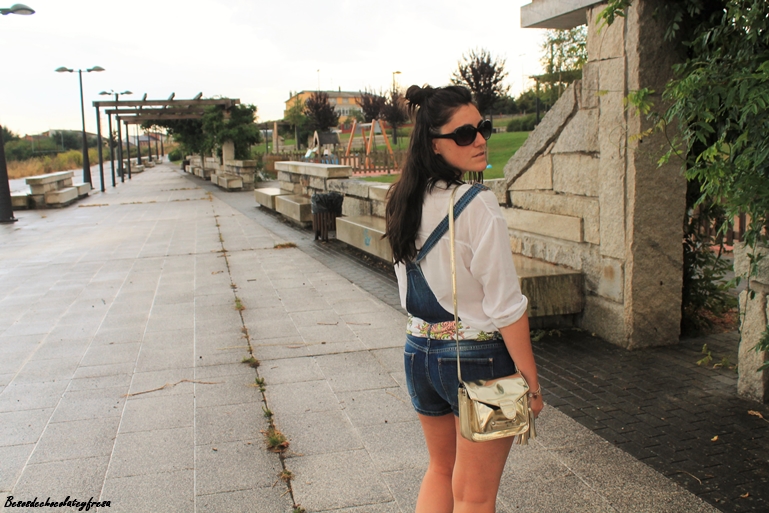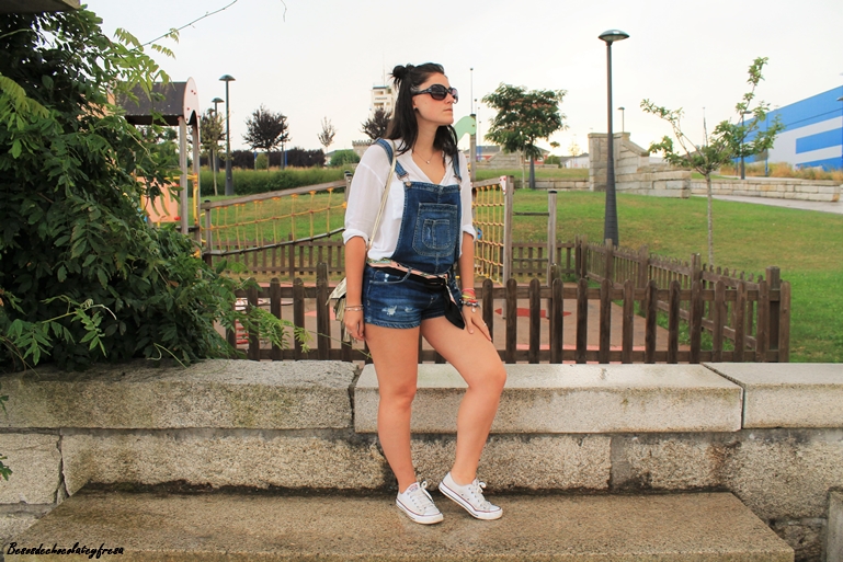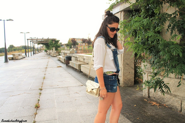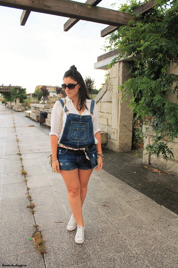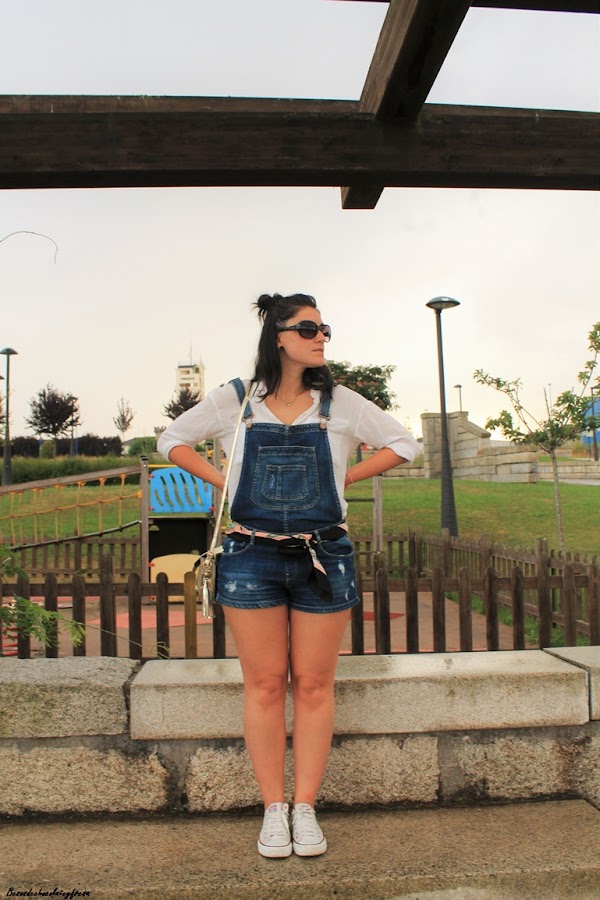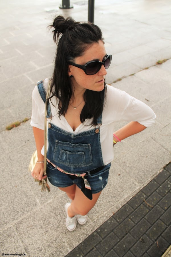 This time I wear denim overalls with white long-sleeved shirt but rolled up and open. As supplements converse in white with gold bag, scarf as a belt (I rescued trend for years) and the new trend in hairstyles, loved or hated half bun. What do you think?