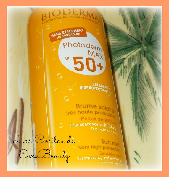 Como os comentaba, Bioderma ha incluído como novedad en su gama solar ésta Bruma solar, llamada PHOTODERM MAX, con SPF50+ (ideal para mí, ya que soy de piel muy blanca) y que destaca entre otras características por ser en formato aerosol y de textura transparente.