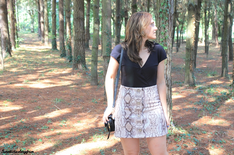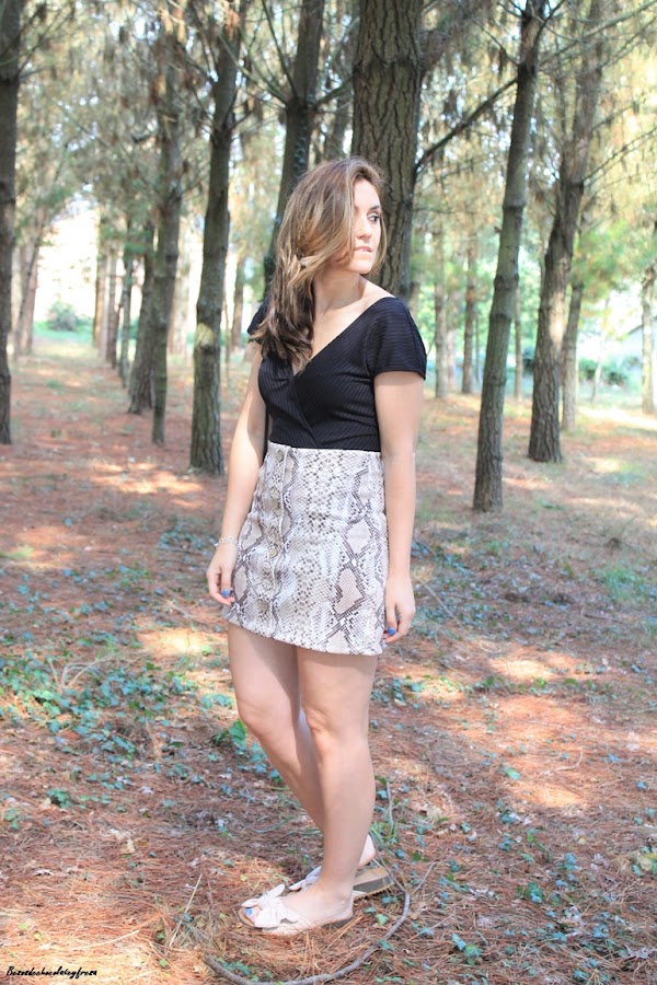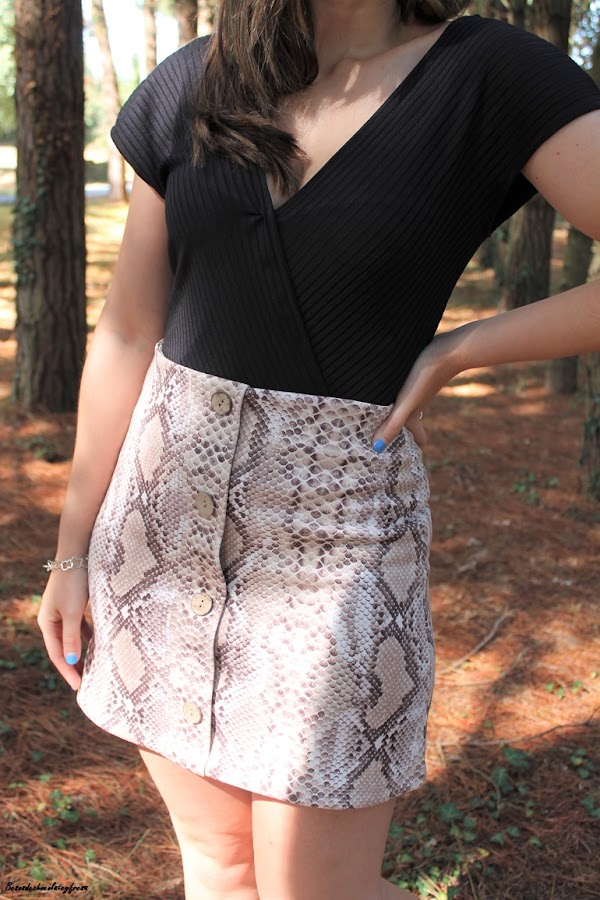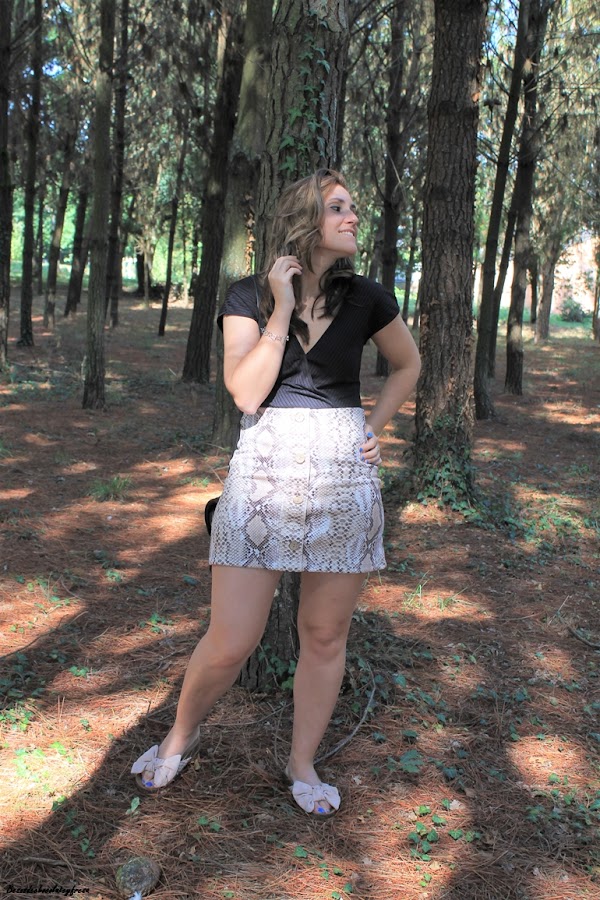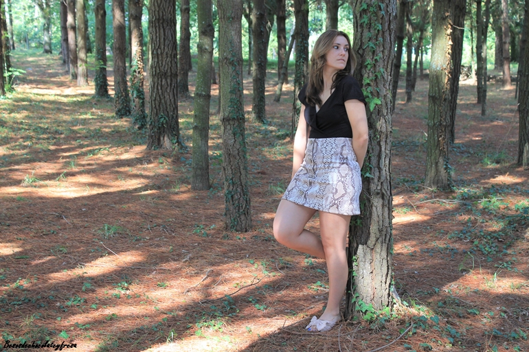 En esta ocasión os enseño mi nueva falda de este estampado tan peculiar en un entorno que bien podría camuflarme con alguna que otra...Con tacto aterciopelada en tonos beige y blancos con el detalle de los botones de madera en la parte delantera.