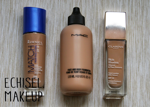 Ahora es cuando podemos unificar los dos grupos en un mismo final. Tanto si tienes un tipo de piel u otra me gusta acabar siempre el maquillaje dando un toque luminoso y sano a la piel utilizando bases que aporten jugosidad al rostro. Como low cost me gusta mucho la Match Perfection de Rimmel. Y como bases más caras me gusta La Skin Illusion de Clarins y por supuesto la Face and Body de Mac que para esta función es mi favorita. Match Perfection Rimmel, Face and Body Mac, Skin Illusion Clarins