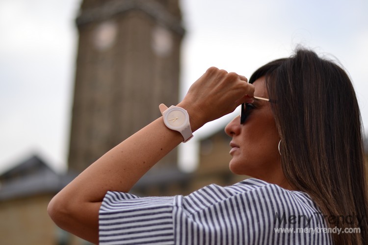 Hoy, el protagonista indiscutible de mi look es mi Swatch New SKIN, el nuevo producto de la gama más fina de modelos de relojes de la firma relojera suiza Swatch que esta temporada he añadido a mi pequeña colección de relojes e incorporado a mi rutina diaria ya que es fácil de llevar (no pesa nada; a veces, ni tan siquiera me acuerdo que lo llevo puesto) y, como es en tono pastel, combina con casi cualquiera de mis looks veraniegos.