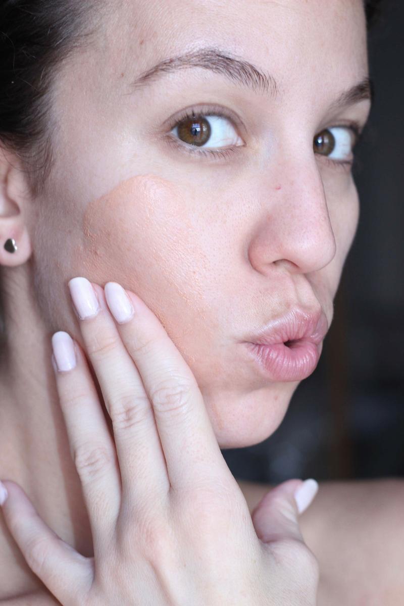 Mezclarlo con la base una de maquillaje un poco acuosa es un acierto, aporta más cobertura y la piel queda con un aspecto satinado muy bonito.