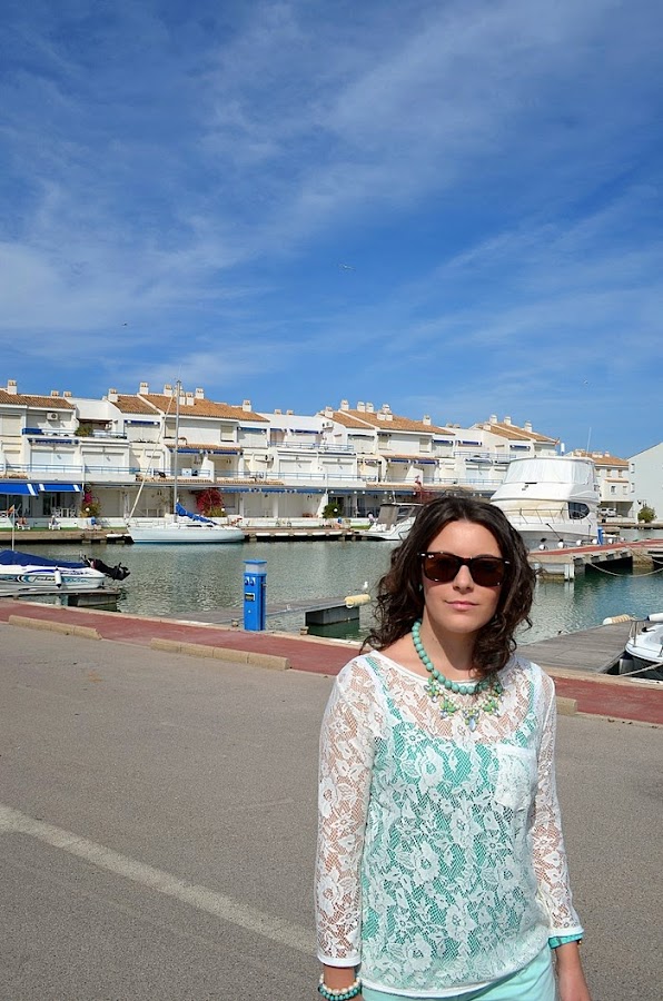 Pantalones: Lefties / Camiseta de tirantes: Stradivarius / Camisa de encaje: Stradivarius (old) / Bolso: Mercadillo / Zapatos : Primark / Collar: Trendy Accessories / Pendientes: Ale-hop / Reloj: Trendy Accessories / Pulseras: Old / Gafas de sol: Rayban