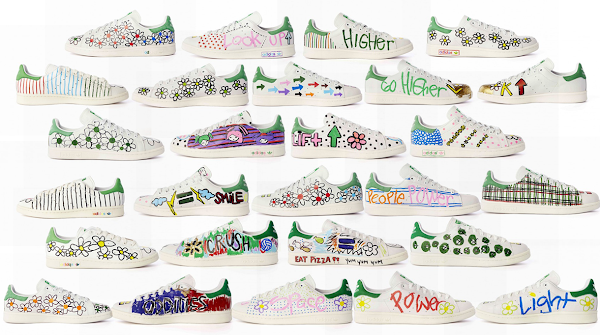What is the result if we put these two great of the moment, the result is a collection of the most cheerful and colorful, this first limited partnership is reduced to ten pair of shoes hand painted by Pharrell Williams that were put on sale yesterday in Paris at Colette store, this sale ripped smile to many children because the benefits will be to the foundation for one From One Hand to Another (Fohta), This association was created by Pharrell Williams in 2008.