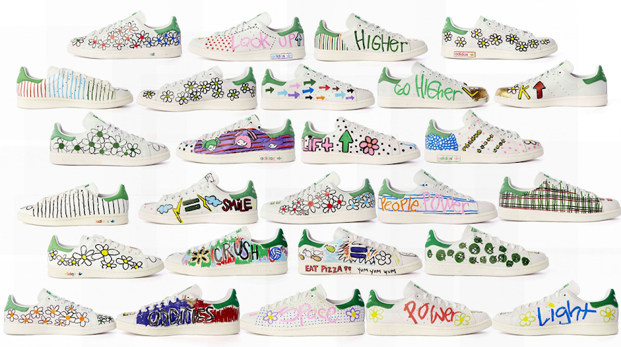 Que tenemos si juntamos a estos dos grandes del momento, pues una colección de los mas alegre y colorista, esta primera limitada colaboración se reduce a diez pares pintados a manos por Pharrell Williams que se pusieron ayer a la venta en París en los almacenes Collete, esta venta arrancara la sonrisa a muchos niños ya que los beneficios serán para la fundacion From one Hand To Another (Fohta), asociacion creada por el mismo Pharrell Willians en 2008.