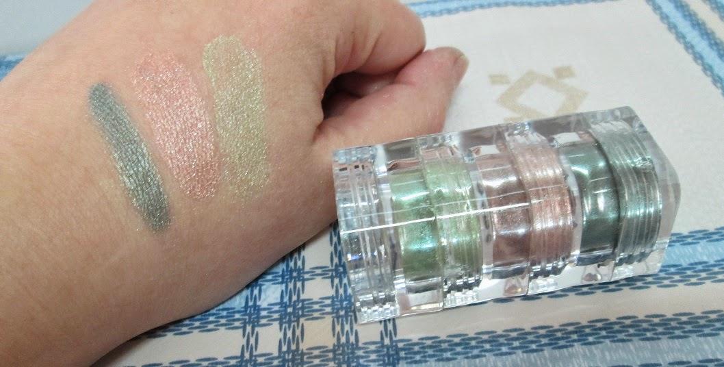 Yo tengo el trio de pigmentos "Mermaiden", en el que combina tres tonos verdes preciosos (un verde oscuro, de acabado satinado, un melocotón precioso con muchos destellos, y un verde clarito tambien con muchos destellos).