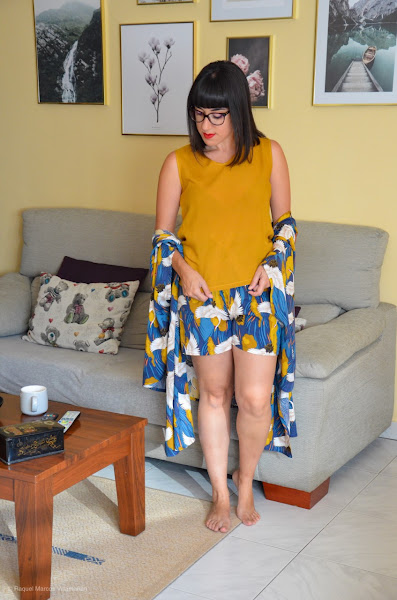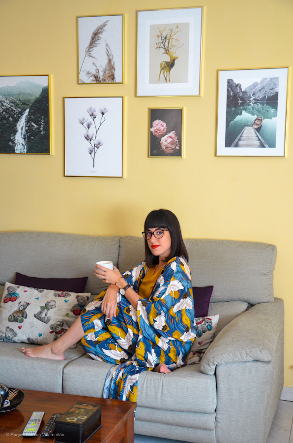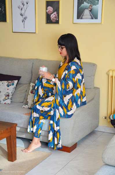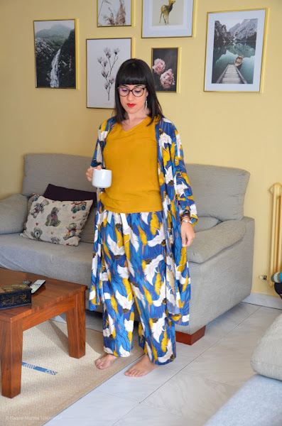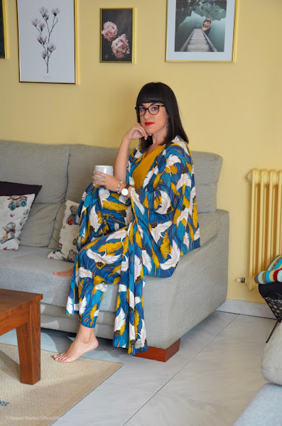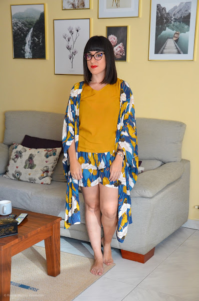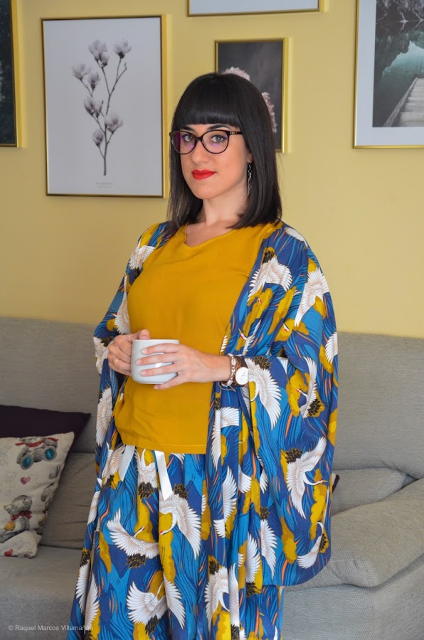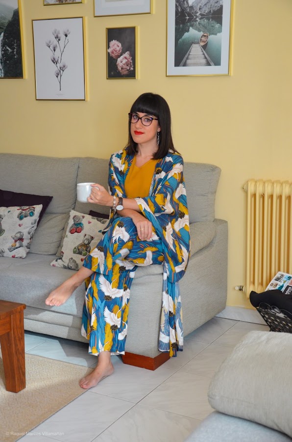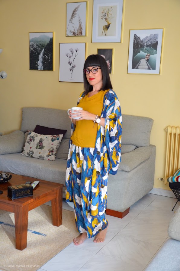 Si los kimonos para el día a día me encantan, a modo de bata y con pijama a conjunto ya me parecen una auténtica maravilla y el estampado de este en particular y la combinación de colores me parece preciosa.