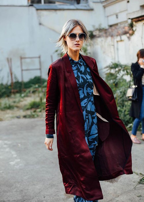 4.- Para un perfect match, elige un abrigo satinado de color contrastante.