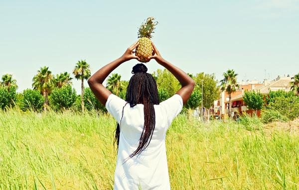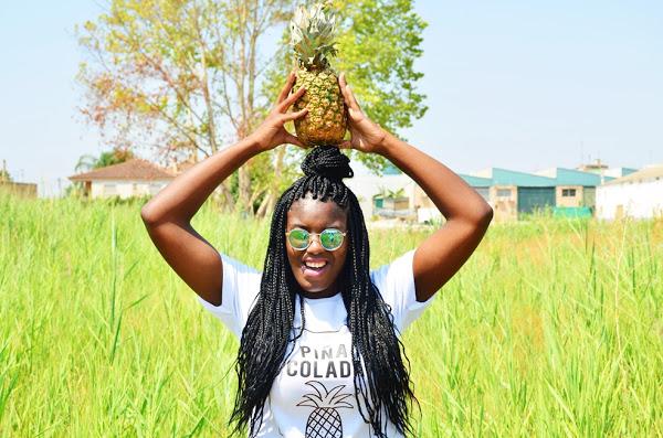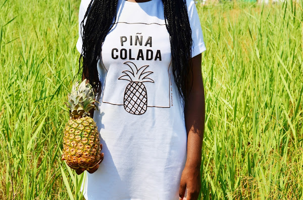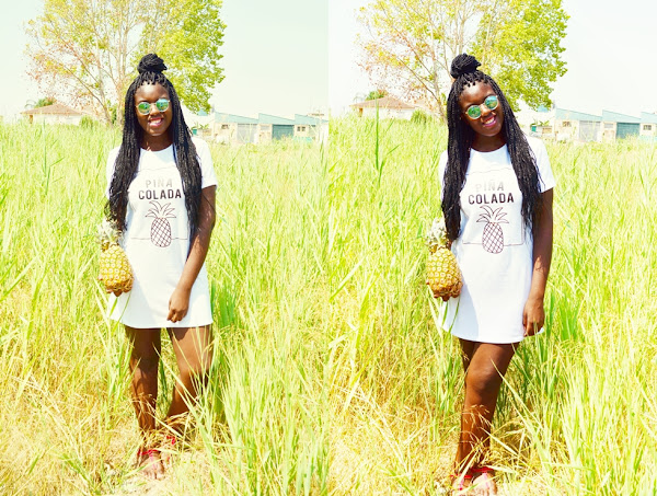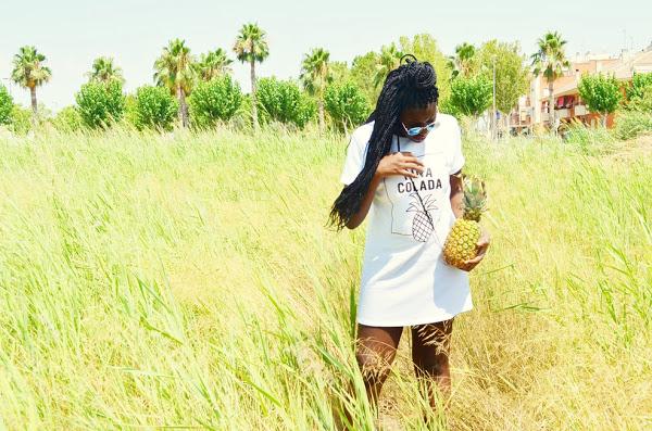 en cuanto vi este vestido online y encima en rebajas sabía que iba a ser mío pero además sabía que iba a tener acompañante en las fotos... La piña jaja. Con unas fotos diferentes para que veáis las trenzas, me tuve que hacer un pequeño moño para que no se me fuese a la cara las trenzas, porque el calor que hacía ese día era too much.