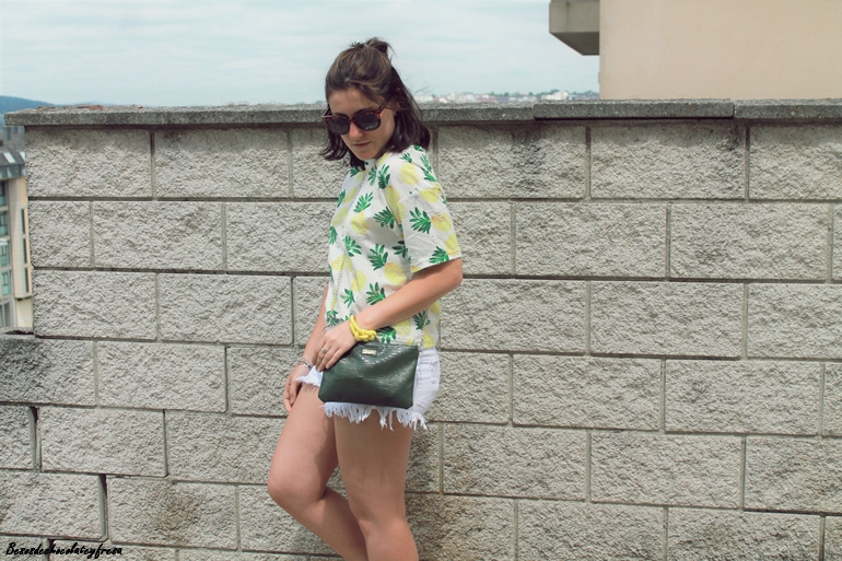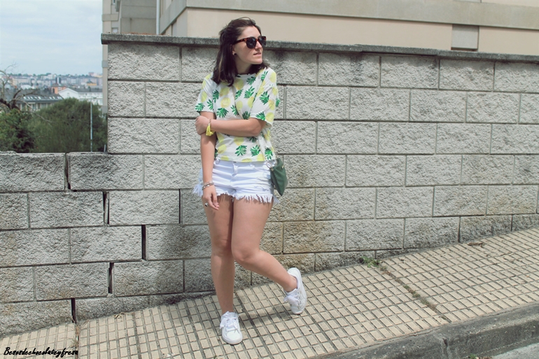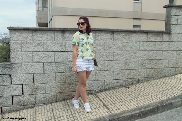En el look de hoy os traigo esta rica fruta en una camiseta que me llegó hace un par de días de la mano de Zaful. De manga corta, fresquita y con pequeños rotos en forma de círculo que la hacen especial a la par que divertida.
