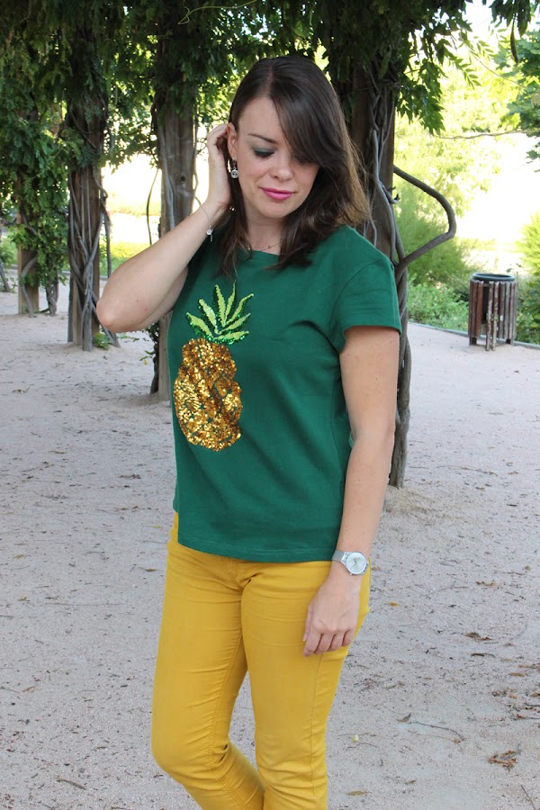Varias veces que miraba ropa en Zaful veía esta camiseta de la piña y me llamaba mucho la atención, me gustan las piñas y que sea así tan llamativa y con los brillantitos y lentejuelas me parecía preciosa, pero no acababa de decidirme a pedirla, ¡hasta que me decidí!