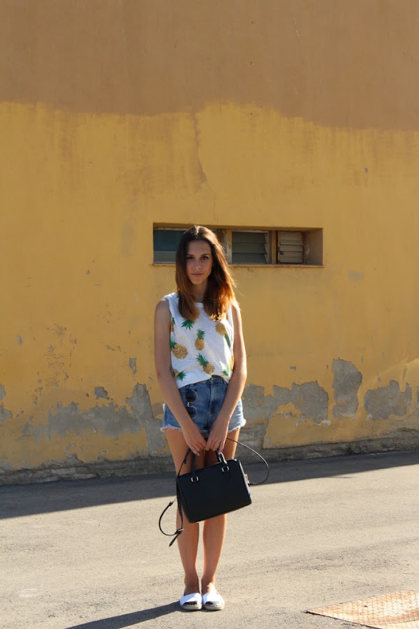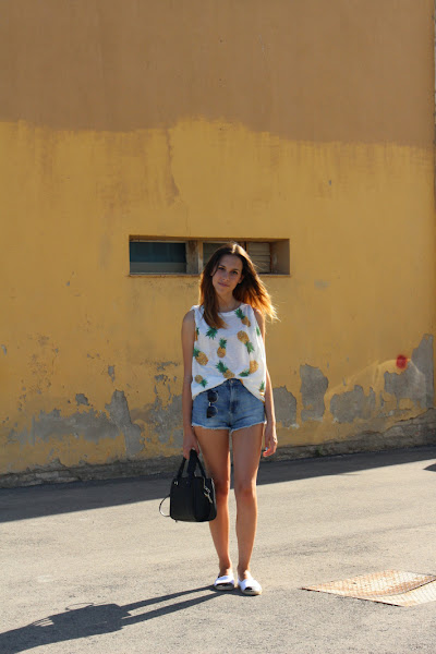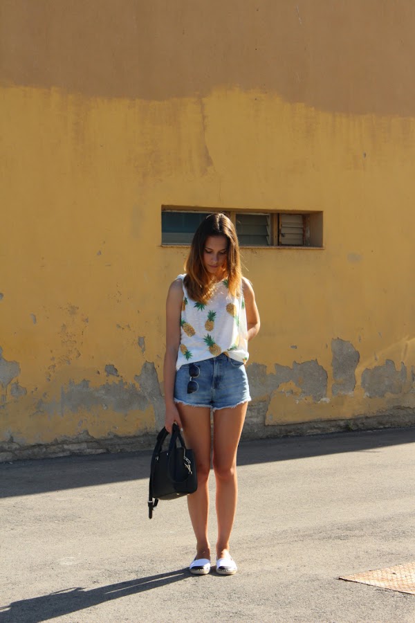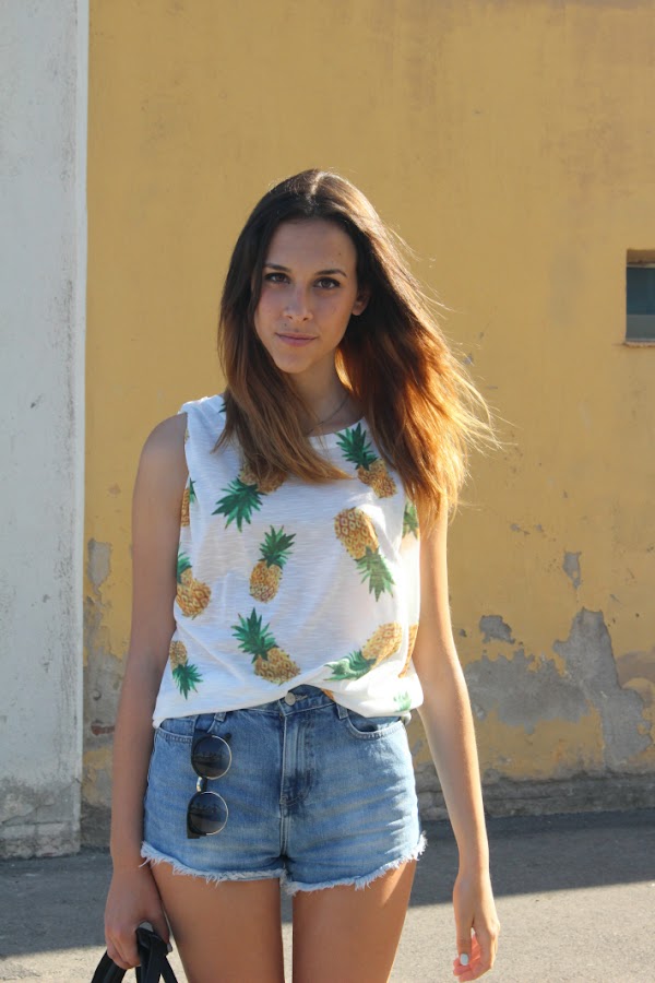Buenos días!! Hoy os enseño un look con uno de mis estampados preferidos para este verano: palmeras y piñas! Lo combiné con blanco para darle todo el protagonismo, le di un toque amarillo suave (sandalias) para darle un toque diferente y mis gafas preferidas, me encantan! Espero que os guste y vuestras opiniones! Good morning! Today I will show you a look with my favourite print for this summer: ...
