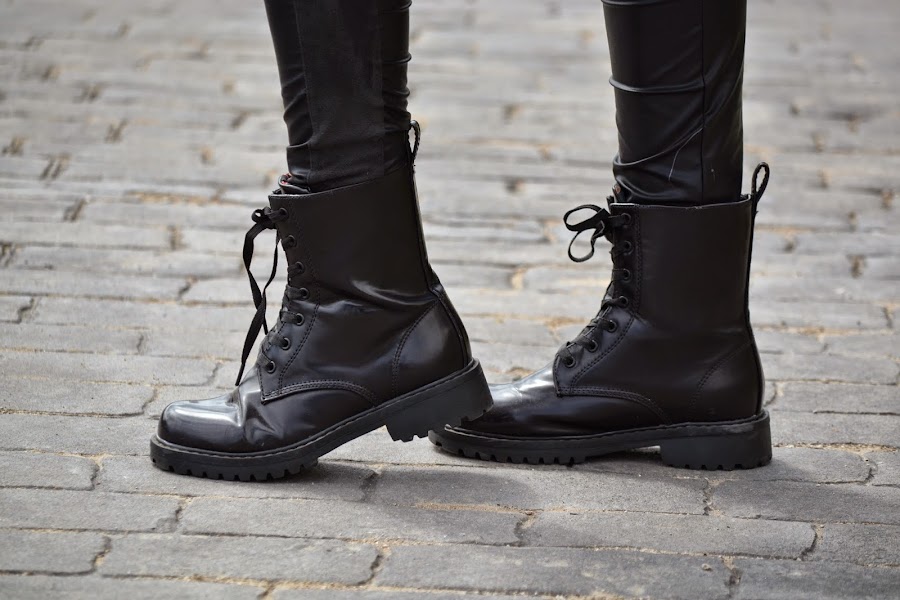 El outfit es de lo más sencillo que puede haber. Leggins imitando a polipiel con una blusa gris que también se puede usar como minivestido y mis botas tipo Martens.